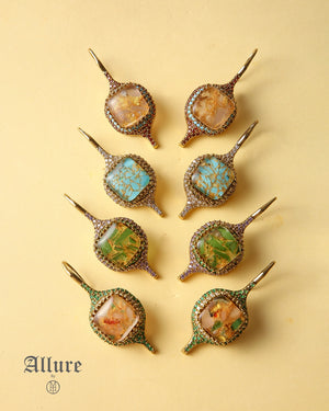 The Lava Glow feature vibrant stones in a range of shades, set within textured metalwork that mimics the beauty of lava flows. These earrings dangle gracefully, offering an eye-catching design that’s perfect for making a bold statement. Whether for a casual day out or a special event, these earrings add a unique touch of style.