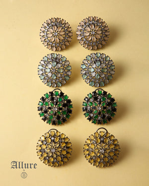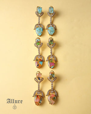 The Crystal Essence features a stunning design with a mix of vibrant stones, carefully set to highlight their natural beauty. With shades like red, grey, ferozi, yellow, and more, these earrings offer a sophisticated, multi-dimensional look. Perfect for those who love a statement piece with intricate detail, they add a burst of color and elegance to any ensemble, making them the perfect addition to both casual and formal looks.