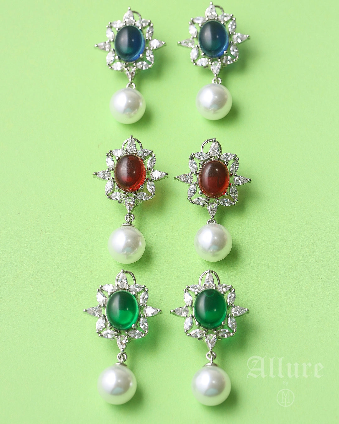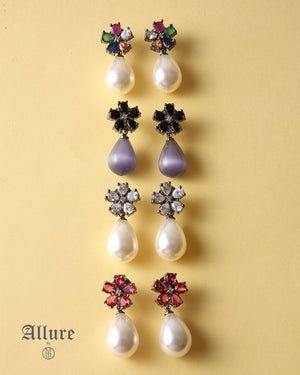 Inspired by the brilliance of a winter star, Elara shines with timeless allure. Featuring a radiant gemstone floral motif crowned with a delicate pearl drop, these earrings bring together celestial charm and refined luxury. A versatile statement piece, perfect for both festive soirées and graceful everyday wear.