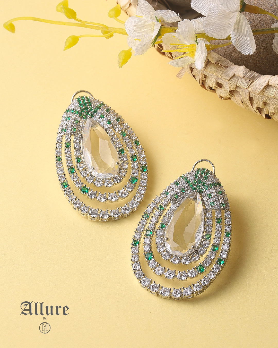 A statement of elegance, these oversized paisley-shaped earrings shimmer with handset Zirconia, reflecting light beautifully. Delicately enhanced with colored jades, they add a vibrant pop of color, making them the perfect blend of sophistication and charm.