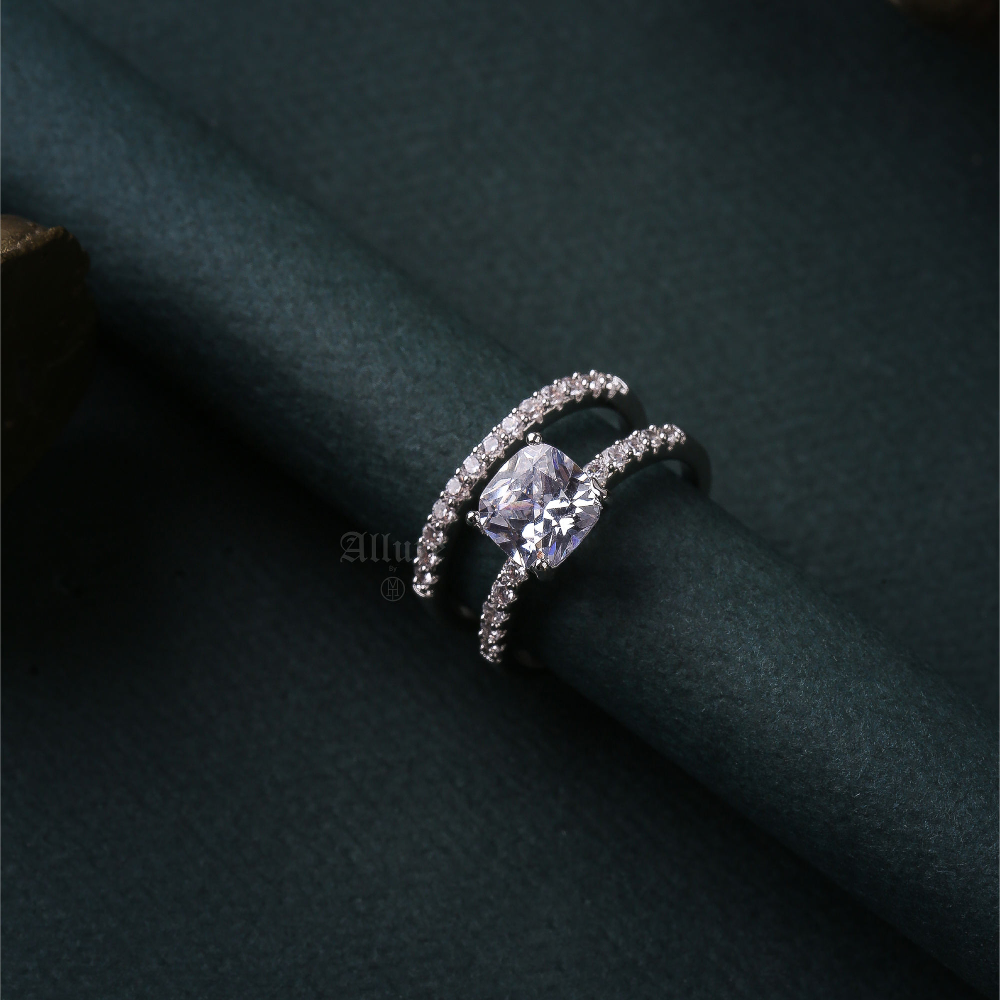 A luxe Zirconia ring set amidst a cluster of small Zircons finished with a silver band