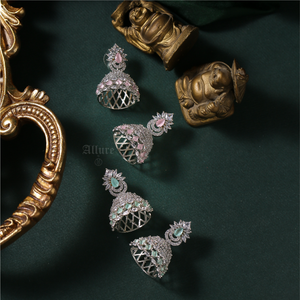 Colored jades and Zirconia set intricately on a rhodium plated band that looks absolutely regal