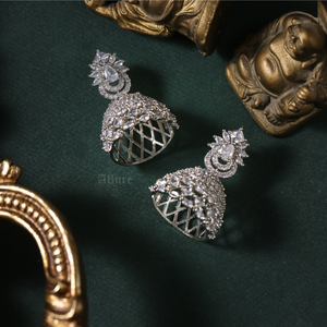 A crystal top branching with Zirconia and colored jade center that looks regal.