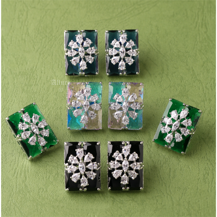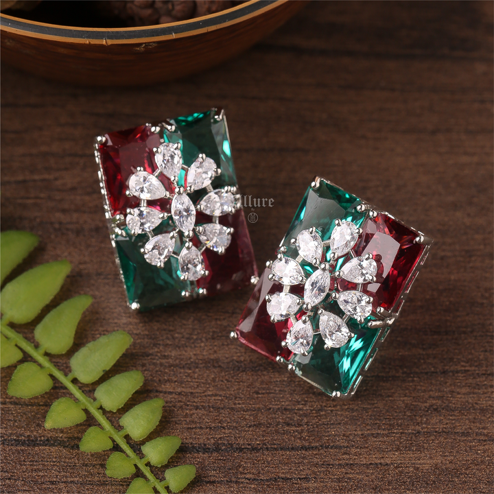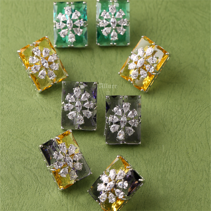 A floral Zirconia center with colored jade tiles that makes a statement.