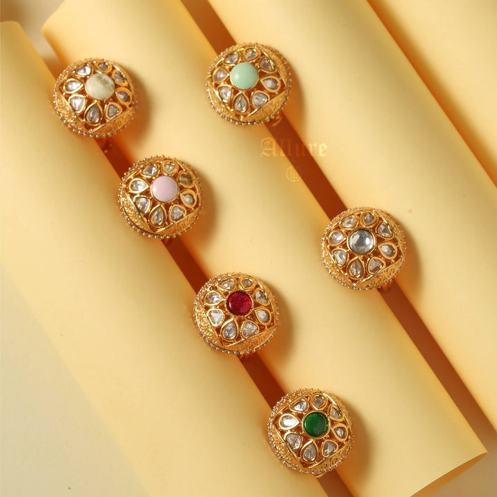 An adjustable ring with a rose gold finish with a floral top and colored jades that looks spectacular.