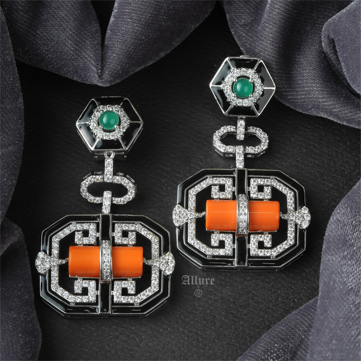 Rita is a classic earring that exudes glamor. It features a Zirconia studded earring with enamel and colored stones in hues of green and pink for an added oomph |