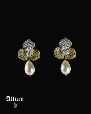 Inspired by the brilliance of a winter star, Elara shines with timeless allure. Featuring a radiant gemstone floral motif crowned with a delicate pearl drop, these earrings bring together celestial charm and refined luxury. A versatile statement piece, perfect for both festive soirées and graceful everyday wear.