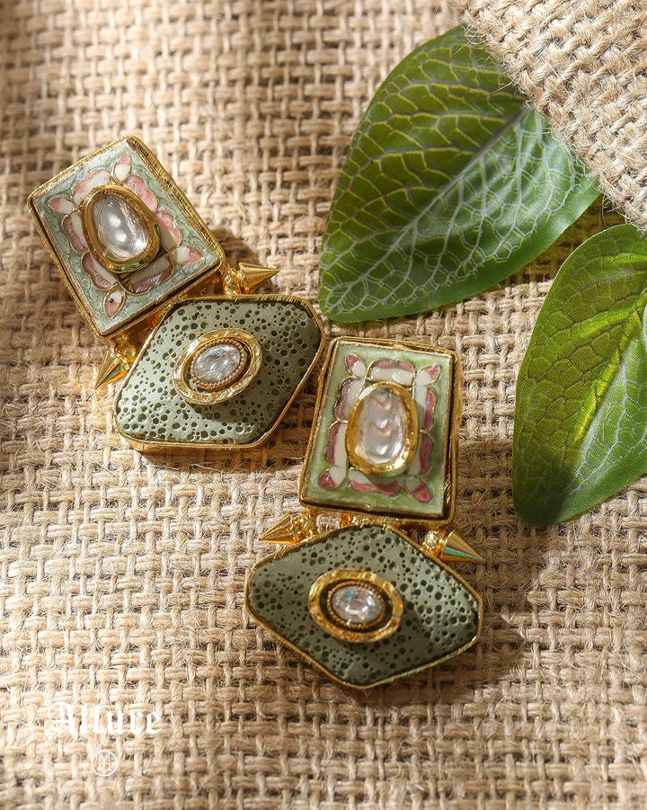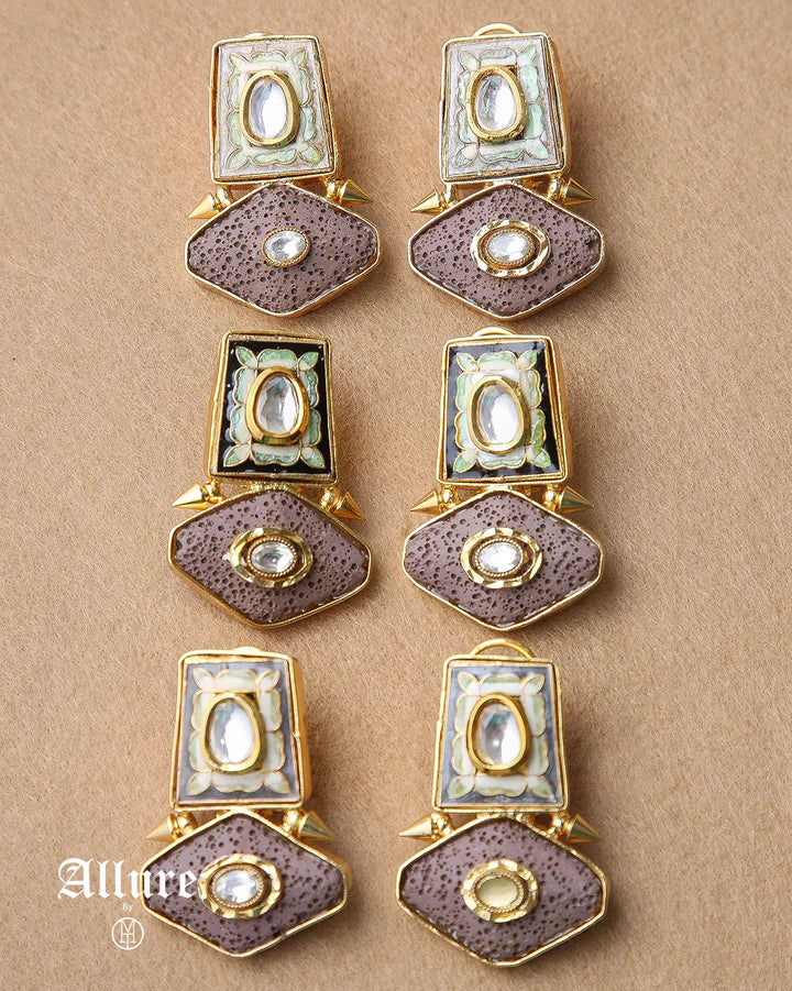 Crafted in an elegant eye shape, these earrings blend olive and espresso-toned Lava Stones into an earthy statement. Minimal yet magnetic — for days when you want to keep it grounded but glowing.