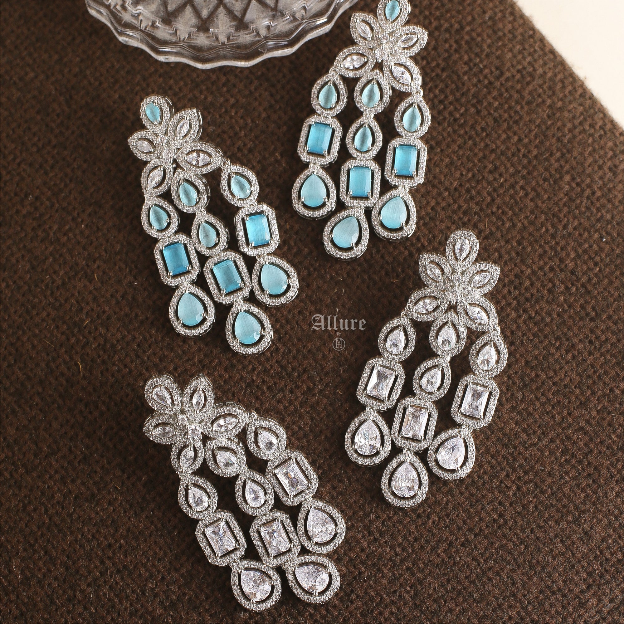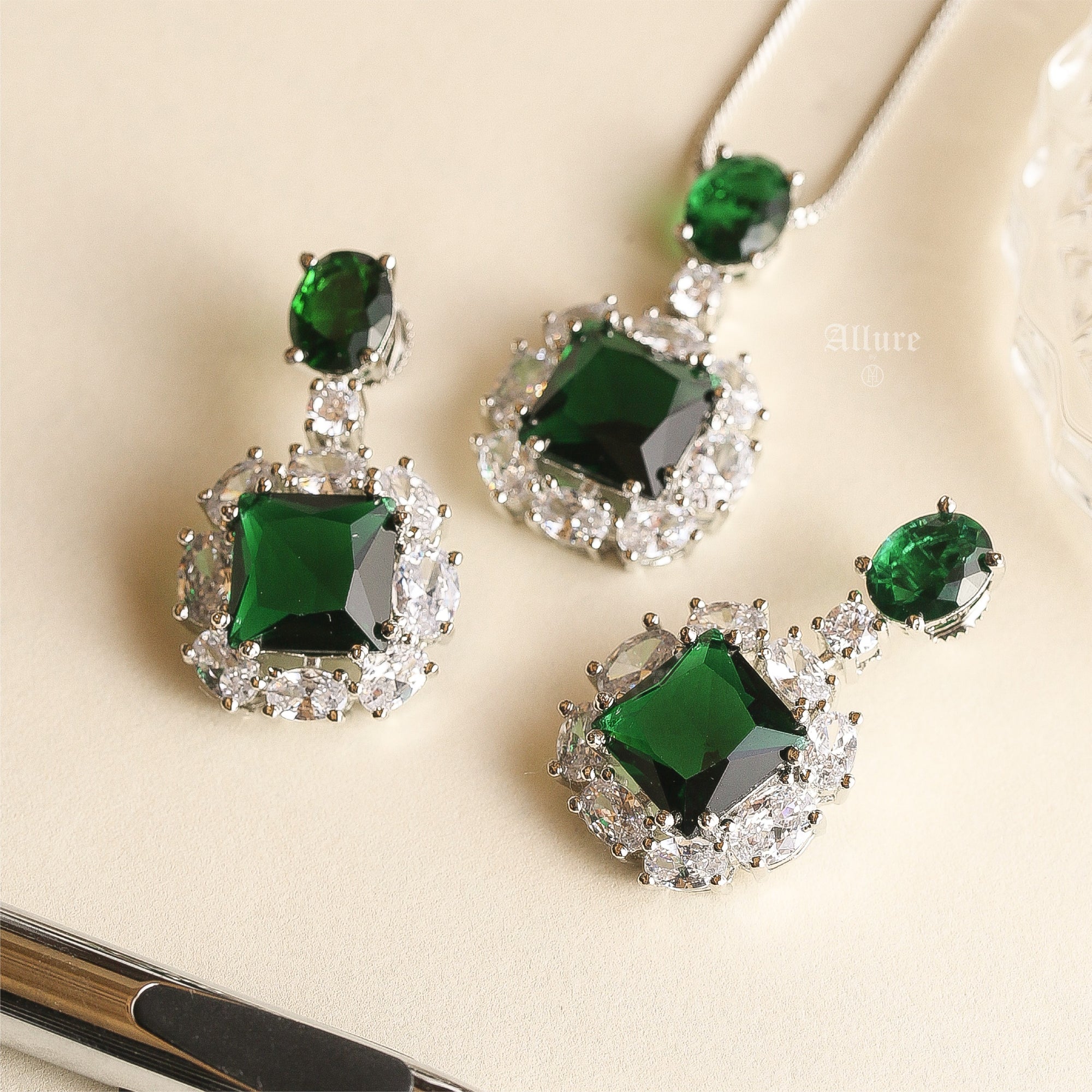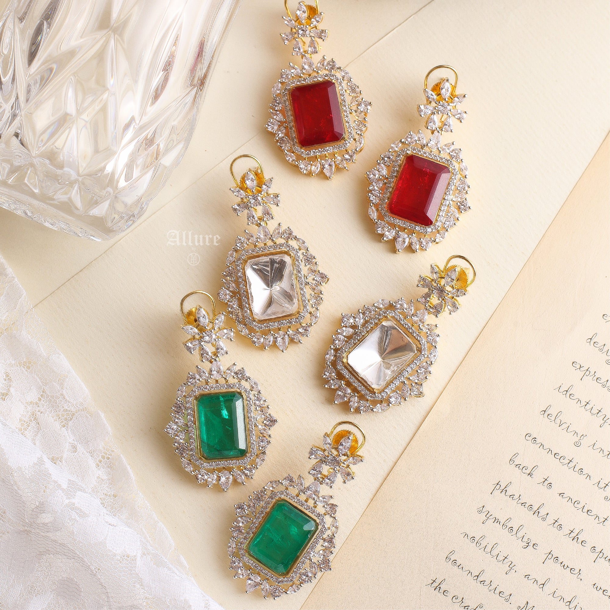 A luxe Zirconia pendant set with colored jades that enhnaces its look. Subtle and understated, the necklace set is a charmer.