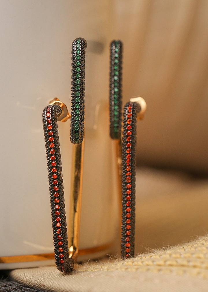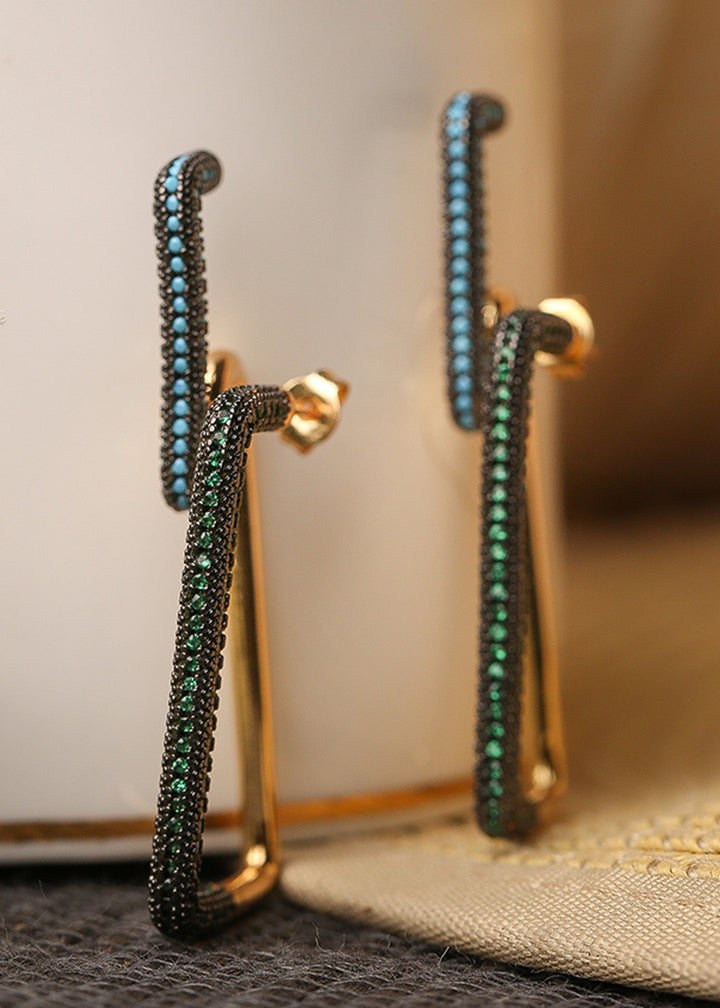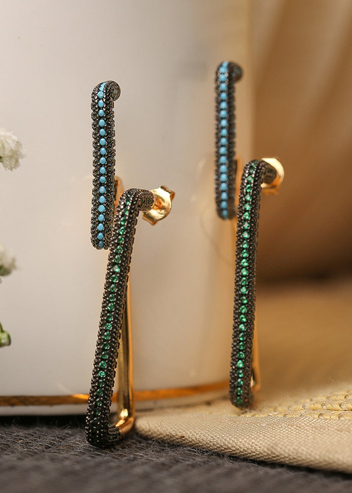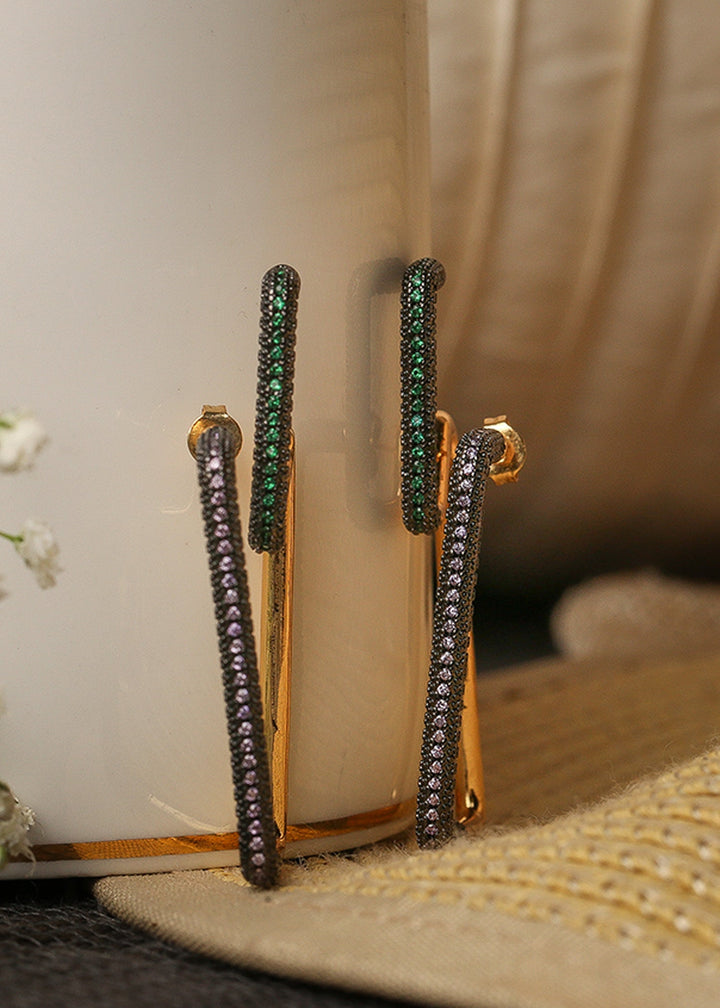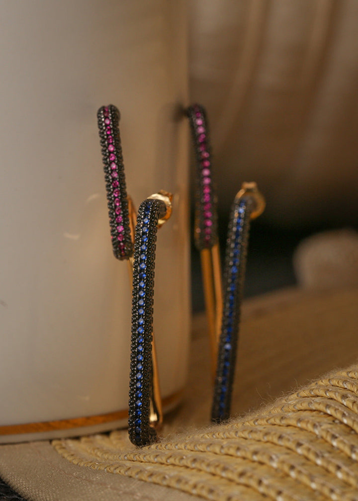 Abstract artisanal earrings featuring a cluster of stones with a hint of gold