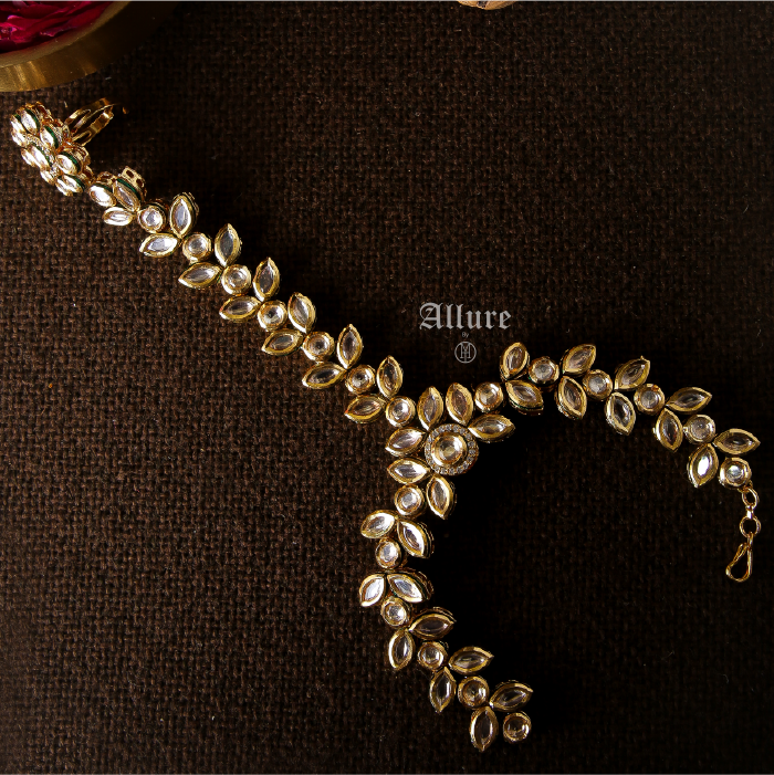 Regal kundan hathphool is a masterpiece of intricate craftsmanship, designed to adorn your hands with grace and sophistication. The delicate design is flawlessly complemented by a stunning kundan ring, adding a touch of glamour and opulence to the ensemble   1. Due to the delicate nature of our jewelry, we regretfully cannot accept returns or exchanges. 2. Meticulously crafted using high-quality alloy, adorned with radiant gold/rhodium plating. 3. To maintain its allure, kindly refrain from contact with perfume or water. 4. Handle with care to keep your jewelry looking flawless over time. 5. Crafted to replicate the charm of fine jewelry without the high cost. 6. Created to be gentle on sensitive skin, offering both style and comfort. 7. Store in provided pouch or box to prevent damage and tangling. 8. Store in an airtight container to protect against tarnishing. |