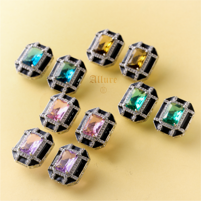 Elegant square bezel studs crafted with a striking jade center, encased in smooth enamel, and adorned with sparkling Zirconia, the earrings combine timeless sophistication with a modern touch.   1. Due to the delicate nature of our jewelry, we regretfully cannot accept returns or exchanges. 2. Meticulously crafted using high-quality alloy, adorned with radiant gold/rhodium plating. 3. To maintain its allure, kindly refrain from contact with perfume or water. 4. Handle with care to keep your jewelry looking flawless over time. 5. Crafted to replicate the charm of fine jewelry without the high cost. 6. Created to be gentle on sensitive skin, offering both style and comfort. 7. Store in provided pouch or box to prevent damage and tangling. 8. Store in an airtight container to protect against tarnishing. |
