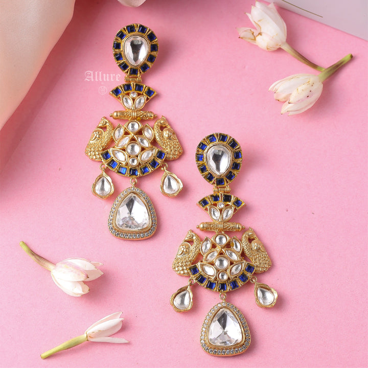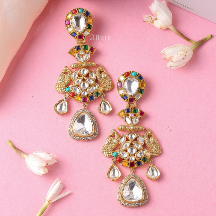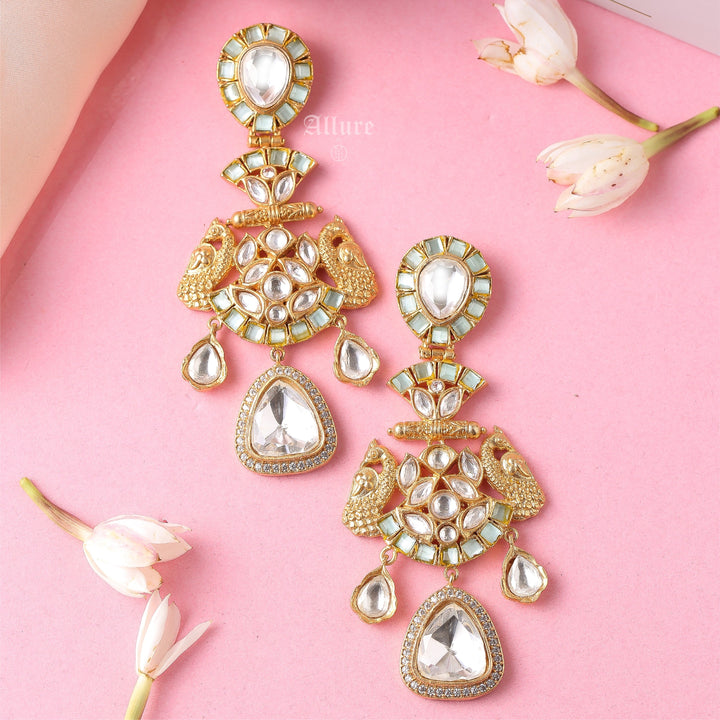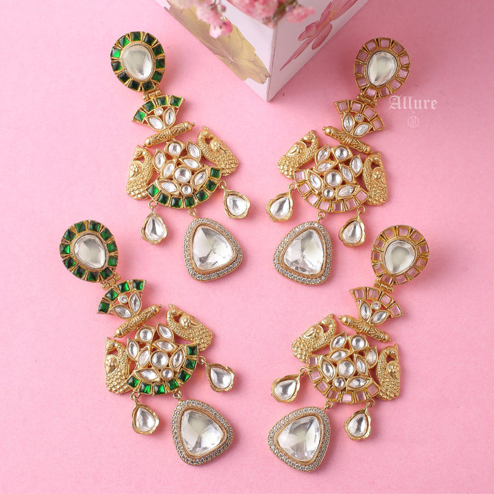 A polki earring with intricate stone work that looks glamorous.