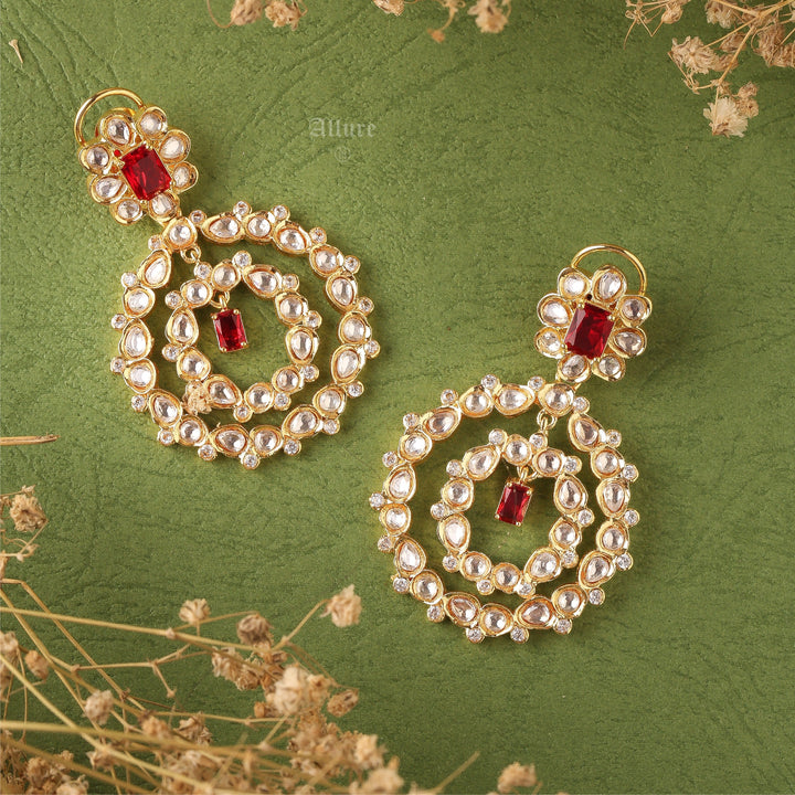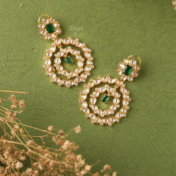 The Anamta earrings are minimalist yet striking with polki and colored stone with a pop of color.