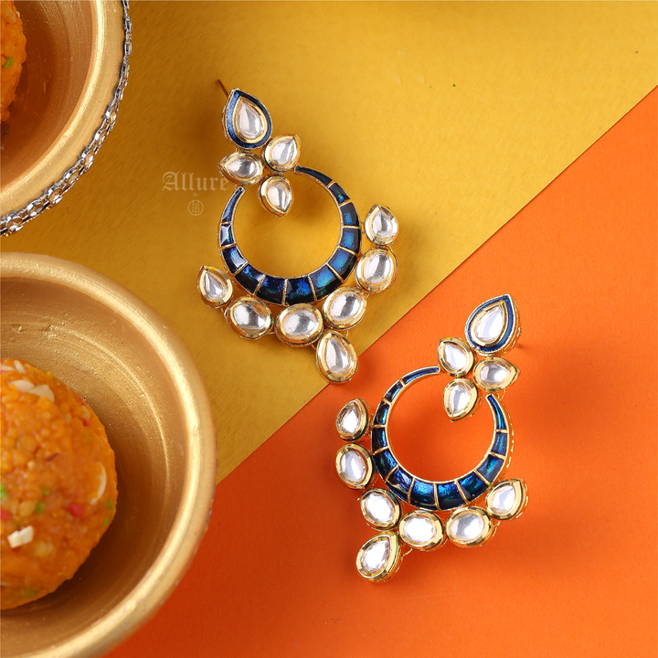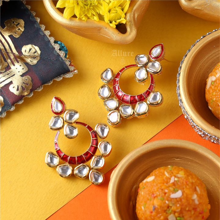 An heirloom piece featuring kundan  with enamel (meenakari) that adds a pop of color.