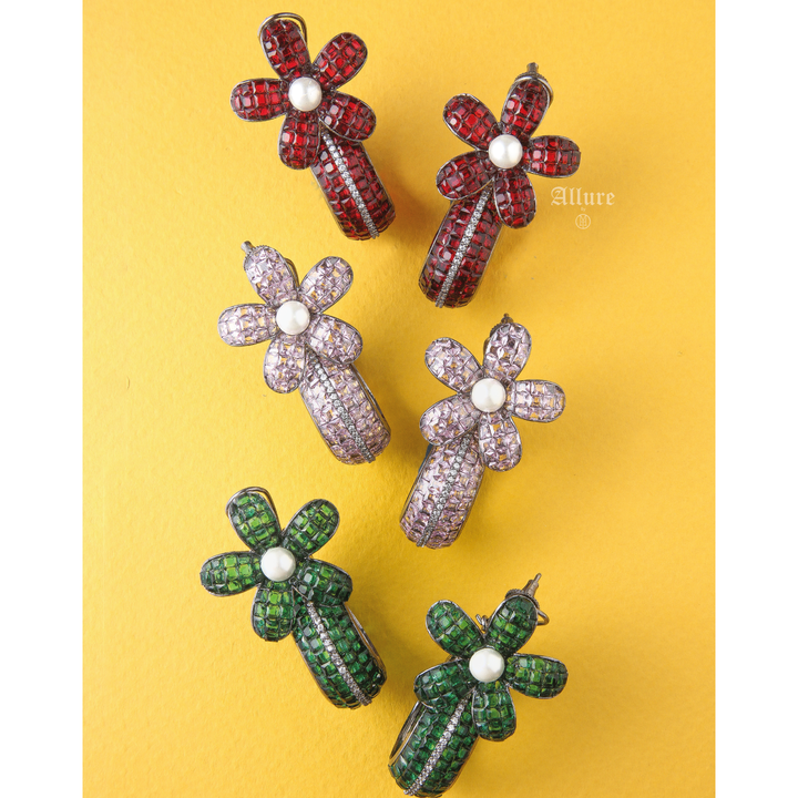 Coralie, your new favorite oversized earrings that capture the essence of summer flora and the ocean's charm. Adorned with faux pearls and clusters of colored jades, these earrings are crafted into an elegant floral design, each petal echoing the vibrant life of coral reefs. Perfect for sunlit days by the sea or romantic summer evenings, Coralie adds a touch of natural beauty and sophistication to any ensemble.   1. Due to the delicate nature of our jewelry, we regretfully cannot accept returns or exchanges. 2. Meticulously crafted using high-quality alloy, adorned with radiant gold/rhodium plating. 3. To maintain its allure, kindly refrain from contact with perfume or water. 4. Handle with care to keep your jewelry looking flawless over time. 5. Crafted to replicate the charm of fine jewelry without the high cost. 6. Created to be gentle on sensitive skin, offering both style and comfort. 7. Store in provided pouch or box to prevent damage and tangling. 8. Store in an airtight container to protect against tarnishing |
