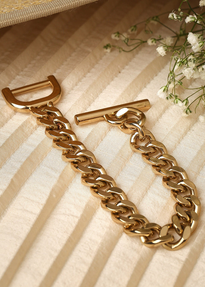Basic yet impactful, the chain bracelet features a T lock that is charming and appealing.