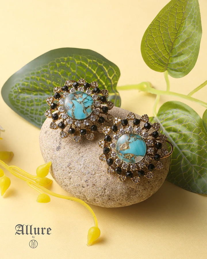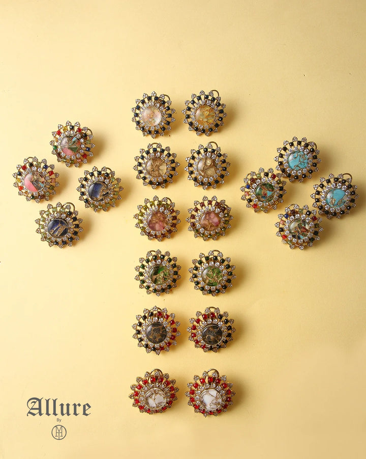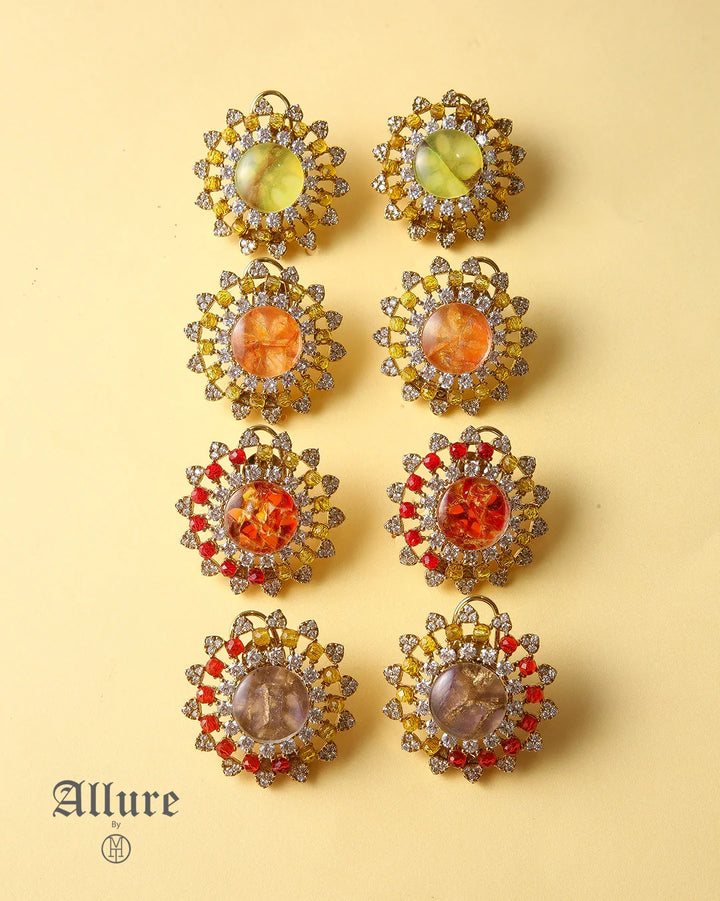 The Crystal Essence features a stunning design with a mix of vibrant stones, carefully set to highlight their natural beauty. With shades like red, grey, ferozi, yellow, and more, these earrings offer a sophisticated, multi-dimensional look. Perfect for those who love a statement piece with intricate detail, they add a burst of color and elegance to any ensemble, making them the perfect addition to both casual and formal looks.