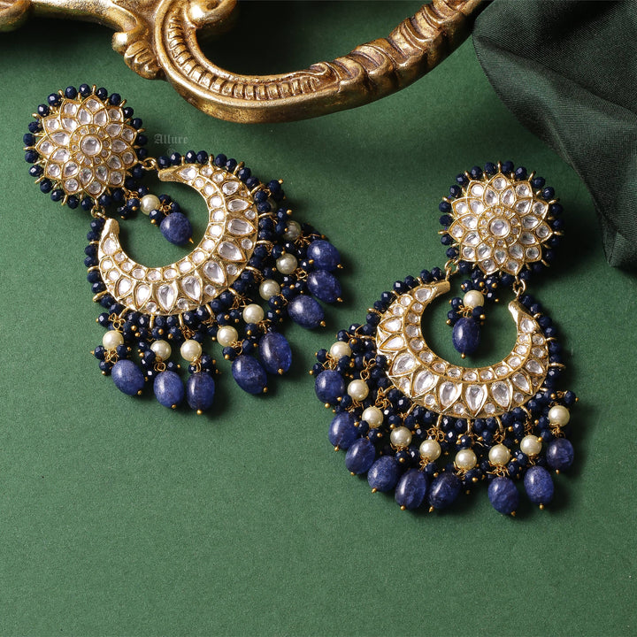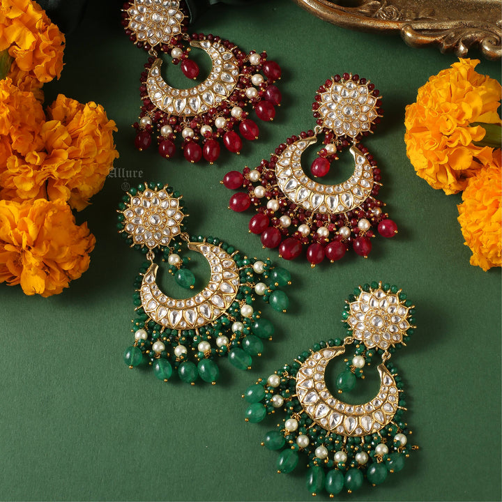 Ethnic and regal, the regal chandbaali features a traditional polki design with colored stones as hangings and finishing that makes a statement.
