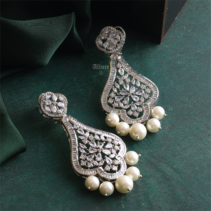 Galaxy, a show-stopping addition to our cosmic-inspired earring collection. These enchanting earrings are meticulously crafted with a 100% rhodium plating that ensures a brilliant, long-lasting shine. Each earring begins with a radiant Zirconia top that sets the stage for a stunning display of craftsmanship. Below, a delicate piece dangling piece, intricately set with both Zirconia and elegant baguettes, capturing the light with every movement. The design is gracefully finished with faux pearls, adding a touch of sophisticated charm that complements the sparkling array above. Galaxy earrings are perfect for anyone looking to infuse their look with celestial elegance and a hint of timeless glamour.   1. Due to the delicate nature of our jewelry, we regretfully cannot accept returns or exchanges. 2. Meticulously crafted using high-quality alloy, adorned with radiant gold/rhodium plating. 3. To maintain its allure, kindly refrain from contact with perfume or water. 4. Handle with care to keep your jewelry looking flawless over time. 5. Crafted to replicate the charm of fine jewelry without the high cost. 6. Created to be gentle on sensitive skin, offering both style and comfort. 7. Store in provided pouch or box to prevent damage and tangling. 8. Store in an airtight container to protect against tarnishing. |