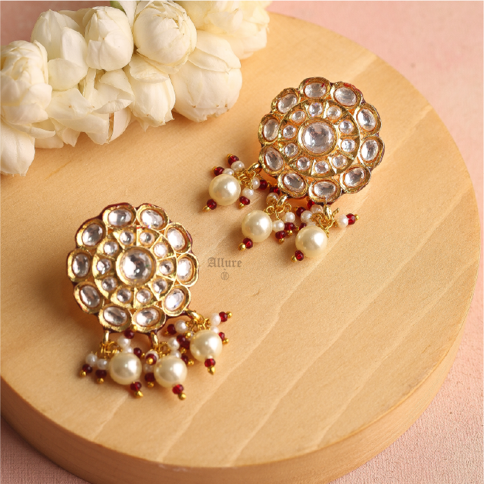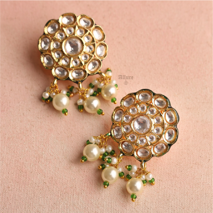 Hira, an exquisite floral Polki stud designed to evoke the beauty of a blossoming rose. Delicately crafted to resemble a blooming flower, it is adorned with three elegant hanging pearls, creating a timeless and graceful look. 1. Due to the delicate nature of our jewelry, we regretfully cannot accept returns or exchanges. 2. Meticulously crafted using high-quality alloy, adorned with radiant gold/rhodium plating. 3. To maintain its allure, kindly refrain from contact with perfume or water. 4. Handle with care to keep your jewelry looking flawless over time. 5. Crafted to replicate the charm of fine jewelry without the high cost. 6. Created to be gentle on sensitive skin, offering both style and comfort. 7. Store in provided pouch or box to prevent damage and tangling. 8. Store in an airtight container to protect against tarnishing |