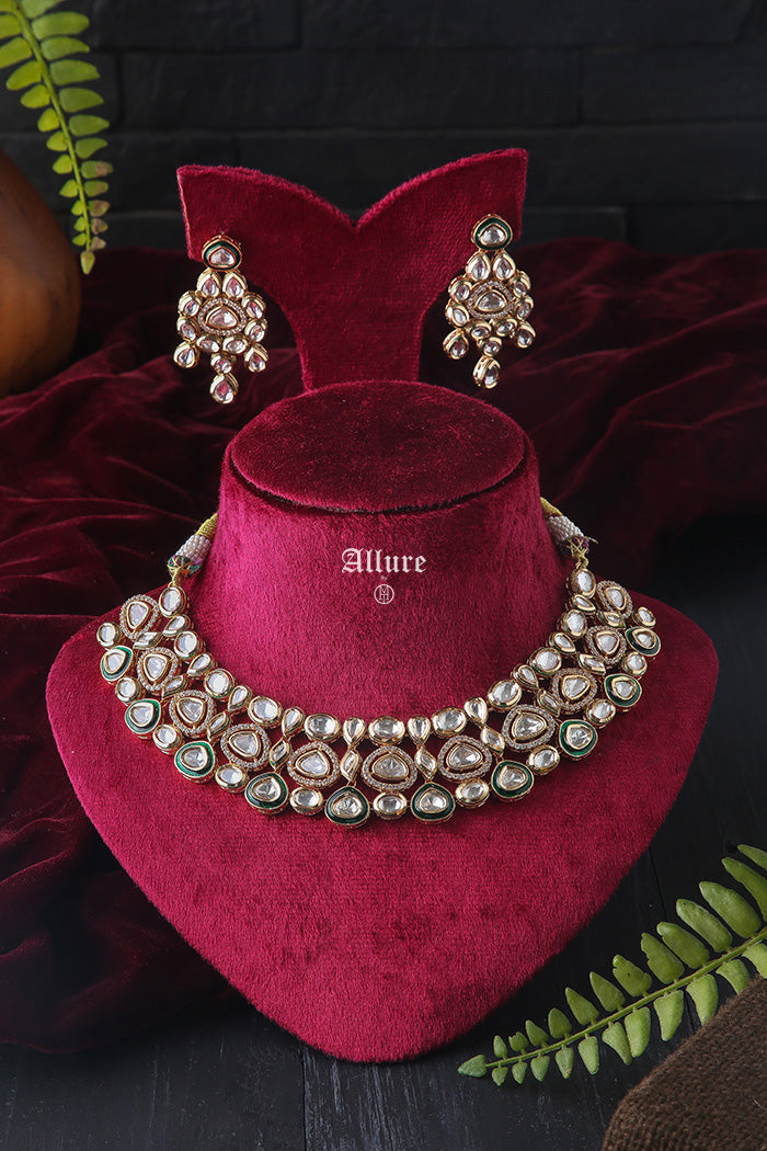 A timeless blend of elegance and tradition, this regal kundan necklace dazzles with exquisite polki craftsmanship and vibrant meenakari accents. Paired with matching earrings, it radiates a celestial charm, perfect for celebrating life’s grand moments. 1. Due to the delicate nature of our jewelry, we regretfully cannot accept returns or exchanges. 2. Meticulously crafted using high-quality alloy, adorned with radiant gold/rhodium plating. 3. To maintain its allure, kindly refrain from contact with perfume or water. 4. Handle with care to keep your jewelry looking flawless over time. 5. Crafted to replicate the charm of fine jewelry without the high cost. 6. Created to be gentle on sensitive skin, offering both style and comfort. 7. Store in provided pouch or box to prevent damage and tangling. 8. Store in an airtight container to protect against tarnishing. |