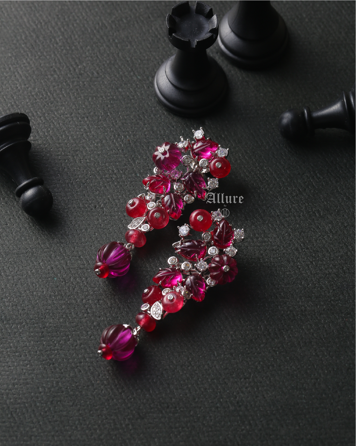For those who prefer a refined yet striking elegance, Illum?©e is the perfect choice. A delicate variation of the classic Regalia earring, it offers a smaller silhouette with an undeniably bold presence. Intricately woven with vivid colored jades and brilliant Zirconia, each stone is meticulously set to create an exquisite interplay of shimmer and depth. The finishing touch? Melon-inspired beads that add a demure yet sophisticated charm.