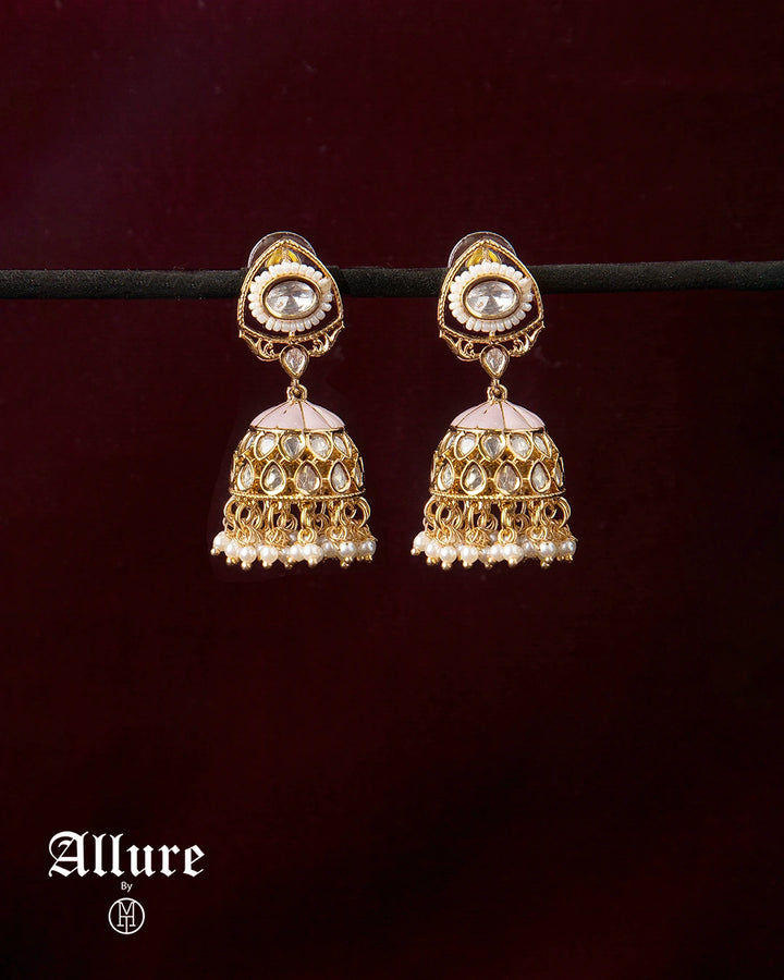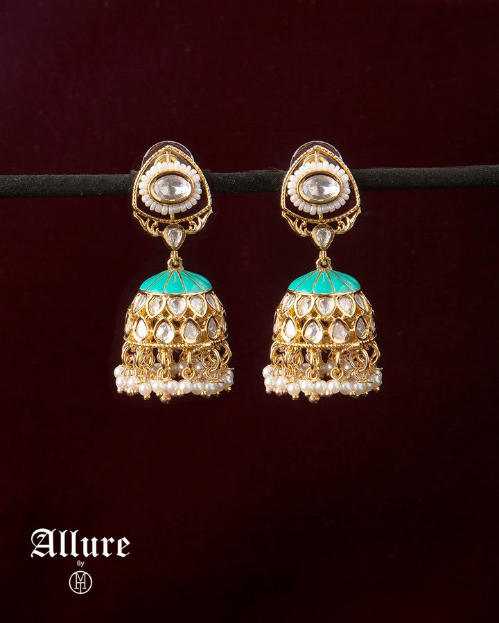 The Jharoka Jhumkis pay tribute to classic royal opulence, fusing the iconic Jhumka silhouette with dramatic Meenakari work. A delicate...