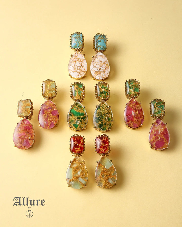 The Lava Glow feature vibrant stones in a range of shades, set within textured metalwork that mimics the beauty of lava flows. These earrings dangle gracefully, offering an eye-catching design that’s perfect for making a bold statement. Whether for a casual day out or a special event, these earrings add a unique touch of style.