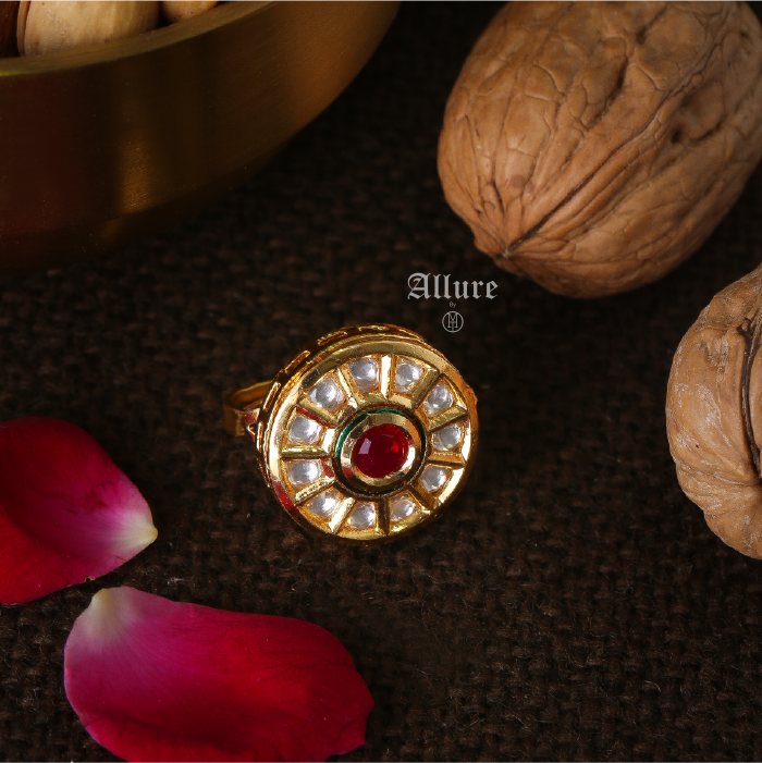 Libaas, a masterpiece that exudes timeless charm and luxury. This bespoke Polki ring, adorned with a captivating red stone, is a symphony of tradition and sophistication   1. Due to the delicate nature of our jewelry, we regretfully cannot accept returns or exchanges. 2. Meticulously crafted using high-quality alloy, adorned with radiant gold/rhodium plating. 3. To maintain its allure, kindly refrain from contact with perfume or water. 4. Handle with care to keep your jewelry looking flawless over time. 5. Crafted to replicate the charm of fine jewelry without the high cost. 6. Created to be gentle on sensitive skin, offering both style and comfort. 7. Store in provided pouch or box to prevent damage and tangling. 8. Store in an airtight container to protect against tarnishing. |