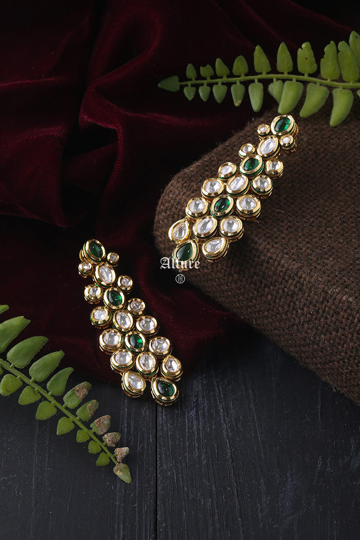 Grace your look with these exquisite kundan earrings, featuring vibrant colored stones that bring a playful yet elegant touch. Perfect for any occasion, Liyana embodies timeless beauty and a splash of charm   1. Due to the delicate nature of our jewelry, we regretfully cannot accept returns or exchanges. 2. Meticulously crafted using high-quality alloy, adorned with radiant gold/rhodium plating. 3. To maintain its allure, kindly refrain from contact with perfume or water. 4. Handle with care to keep your jewelry looking flawless over time. 5. Crafted to replicate the charm of fine jewelry without the high cost. 6. Created to be gentle on sensitive skin, offering both style and comfort. 7. Store in provided pouch or box to prevent damage and tangling. 8. Store in an airtight container to protect against tarnishing. |