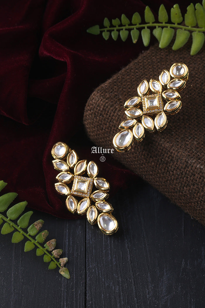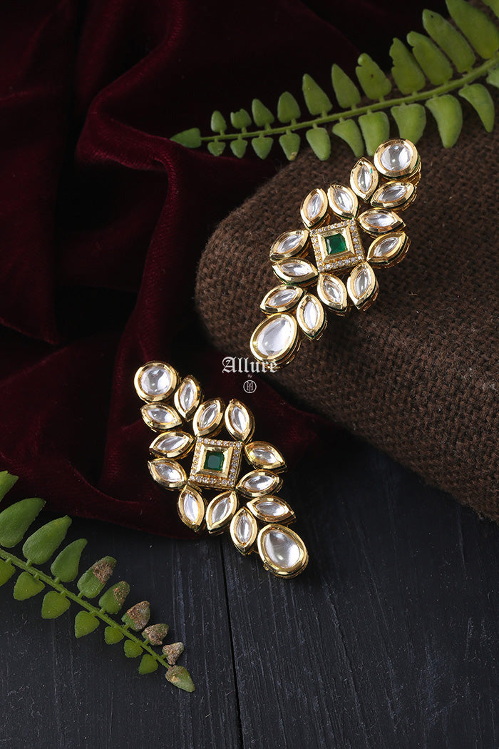 A timeless blend of tradition and elegance, these glamorous kundan earrings feature intricate craftsmanship with a stunning hanging teardrop. Perfect for adding a touch of sophistication to any occasion, Mahrin exudes grace and charm.   1. Due to the delicate nature of our jewelry, we regretfully cannot accept returns or exchanges. 2. Meticulously crafted using high-quality alloy, adorned with radiant gold/rhodium plating. 3. To maintain its allure, kindly refrain from contact with perfume or water. 4. Handle with care to keep your jewelry looking flawless over time. 5. Crafted to replicate the charm of fine jewelry without the high cost. 6. Created to be gentle on sensitive skin, offering both style and comfort. 7. Store in provided pouch or box to prevent damage and tangling. 8. Store in an airtight container to protect against tarnishing. |