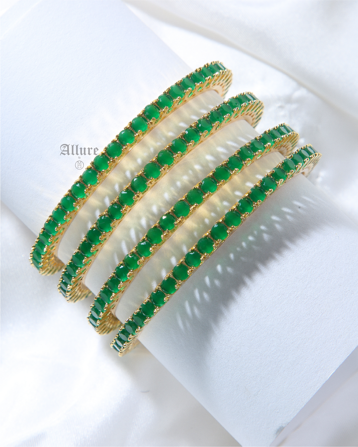 Meher is a classic set of chooriya from our Heritage range that captures the essence of understated royalty. Crafted with meticulous attention, the bangles feature a stunning lineup of colored jade stones set in gold-toned detailing, offering a timeless blend of elegance and tradition   1. Due to the delicate nature of our jewelry, we regretfully cannot accept returns or exchanges. 2. Meticulously crafted using high-quality alloy, adorned with radiant gold/rhodium plating. 3. To maintain its allure, kindly refrain from contact with perfume or water. 4. Handle with care to keep your jewelry looking flawless over time. 5. Crafted to replicate the charm of fine jewelry without the high cost. 6. Created to be gentle on sensitive skin, offering both style and comfort. 7. Store in provided pouch or box to prevent damage and tangling. 8. Store in an airtight container to protect against tarnishing.   |
