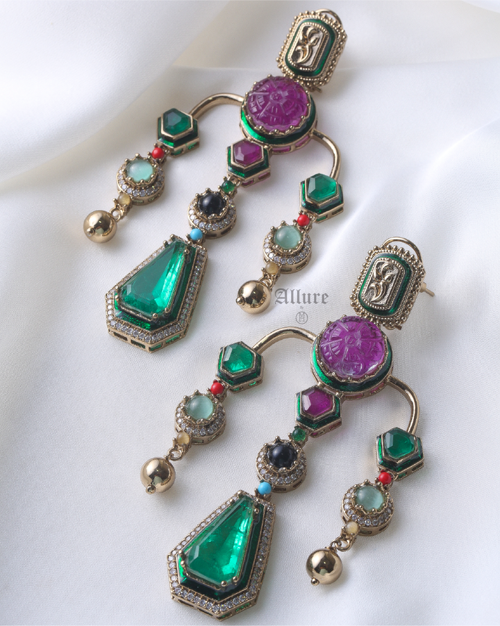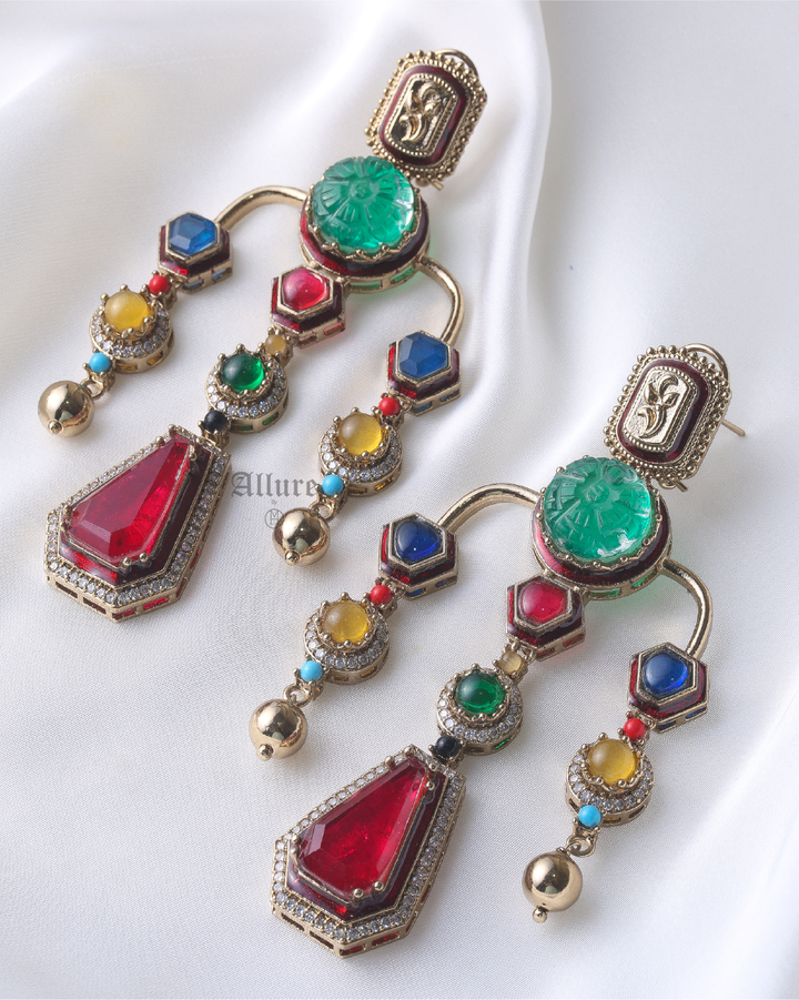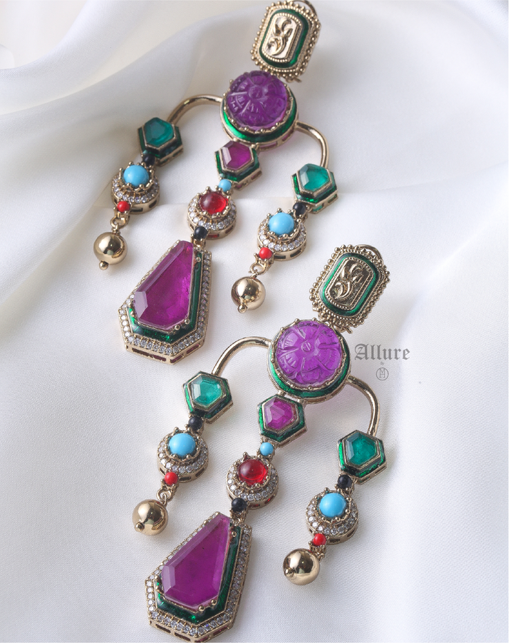 Bold, eclectic, and steeped in tradition, Mehvar from our Heritage range is a celebration of artistic storytelling through jewelry. Featuring intricate carvings, playful jhumki accents, and a curated mix of shapes and stones, this design evokes the spirit of royalty with a twist of the avant-garde.   1. Due to the delicate nature of our jewelry, we regretfully cannot accept returns or exchanges. 2. Meticulously crafted using high-quality alloy, adorned with radiant gold/rhodium plating. 3. To maintain its allure, kindly refrain from contact with perfume or water. 4. Handle with care to keep your jewelry looking flawless over time. 5. Crafted to replicate the charm of fine jewelry without the high cost. 6. Created to be gentle on sensitive skin, offering both style and comfort. 7. Store in provided pouch or box to prevent damage and tangling. 8. Store in an airtight container to protect against tarnishing. |