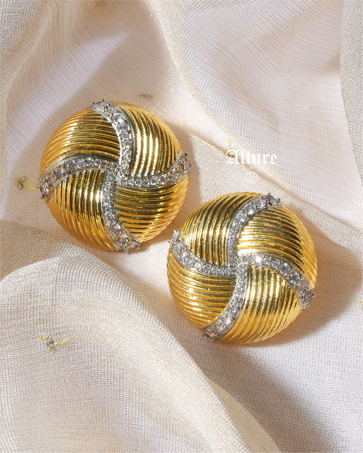 The Oracle earrings captivate with their bold, round silhouette and luxurious sand-textured gold-plated finish. Sparkling zirconia accents elevate their charm, adding just the right touch of brilliance. Chunky yet elegant, these earrings make a statement of timeless sophistication, perfect for those who love refined, eye-catching jewelry.