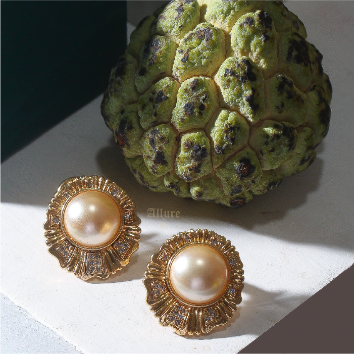 Pansy, an exclusive limited-edition earring that exudes timeless elegance. Inspired by delicate florals, this design features a lustrous pearl stud surrounded by intricately crafted gold petals, handset with shimmering zirconia. Perfectly blending sophistication and glamour, Pansy is a versatile piece that elevates any outfit, from casual chic to evening elegance.