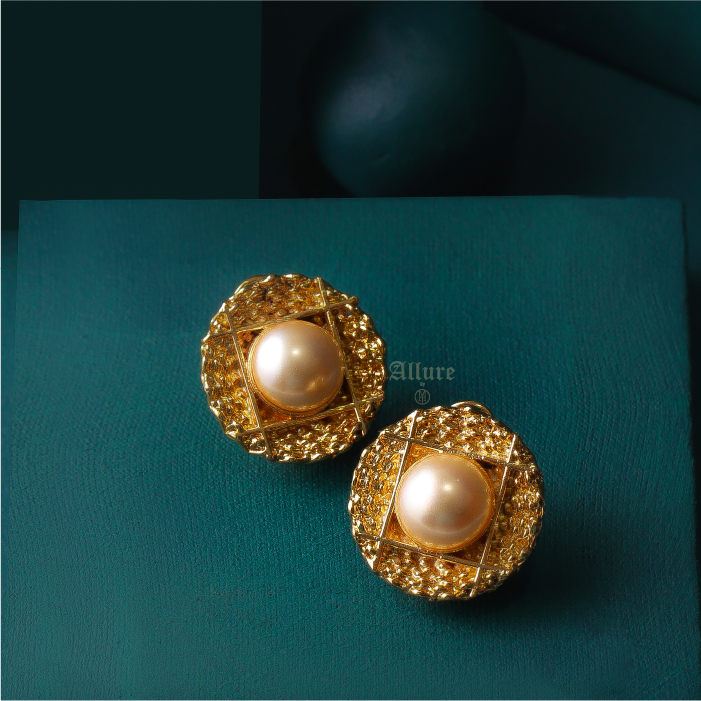 . At the heart of these captivating earrings lies a lustrous faux pearl, gracefully stealing the spotlight. Framed in a bold square design and encased within a textured, chunky golden outer layer, these earrings exude sophistication and charm. The interplay of smooth pearl and textured gold makes Perlz a statement piece that elevates any look. Crafted for those who appreciate luxury, Perlz is a true masterpiece, made to shine as brightly as you do.