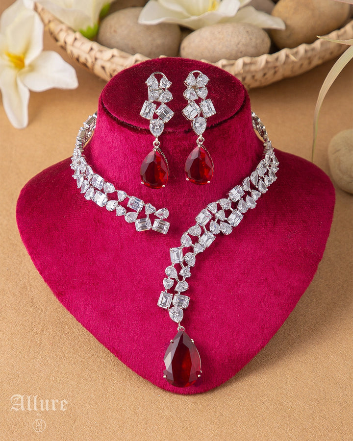 Shadows, light, and a single stroke of colour create a kind of aesthetic – the kind that makes you look twice. Éclat Noir leans into that mood beautifully. Its sharp, geometric sparkle draws the eye upward, while a deep sapphire or emerald drop settles the whole design with a sense of gravity and poise. The earrings mirror this contrast in scale and shine, adding movement without disturbing the piece’s clean, refined balance. It embodies a calm, confident gleam that stays with you.