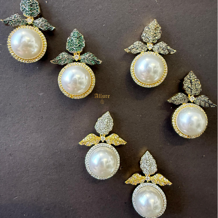 A timeless blend of elegance and serenity. This exquisite earring features a floral top adorned with a cluster of vibrant jades and a sparkling zirconia center, gracefully paired with a luminous faux pearl encircled by shimmering zirconia. Perfect for adding a refined touch to your Ramadan festivities.