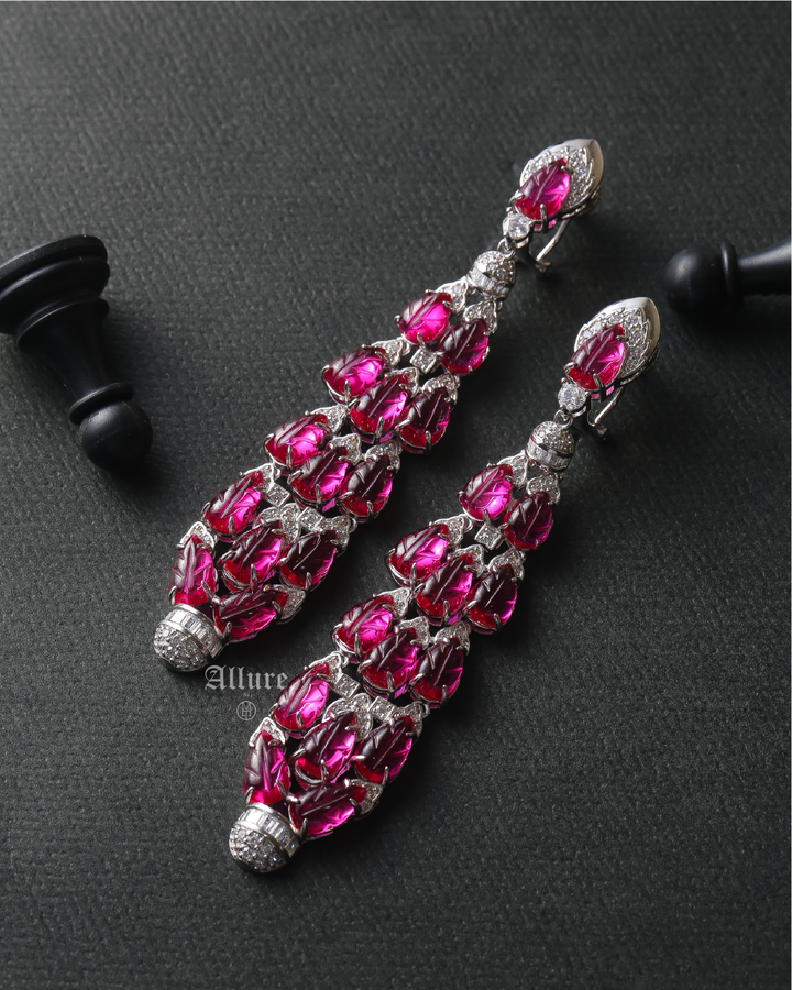 Exude regal charm with Regalia, a masterpiece of cascading elegance. These waterfall-style earrings are designed for those who appreciate refined luxury without excess. Adorned with meticulously selected colored jades, each piece flows seamlessly, creating a soft, fluid motion that captivates. Embedded Zirconia stones add the perfect touch of radiance, catching the light for a breathtaking shimmer. The sleek, elongated design ensures an effortless yet striking look, making it the ultimate accessory for evening glamour or refined daytime sophistication.