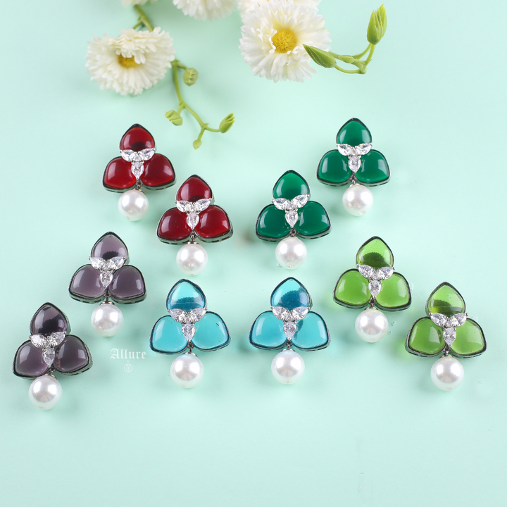 Ombre stones accentuated with Zirconia and finished with a pearl for a statement and exuberant look