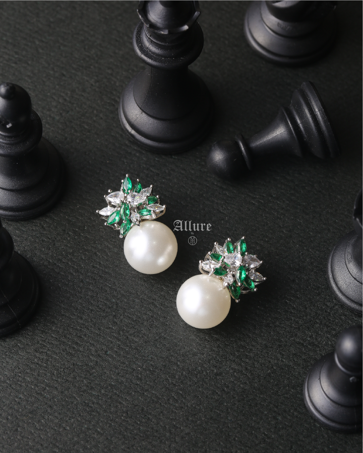 Refined and radiant, Veloura redefines luxury in a delicate form. These diamond-inspired studs may be small, but their impact is undeniably grand. Designed in an enchanting floral motif, each petal is adorned with Zirconia, capturing the essence of a blooming masterpiece. The brilliance of the stones is beautifully complemented by colored jade accents, adding a touch of sophistication. Finished with a lustrous faux pearl, Veloura is a statement of timeless elegance.