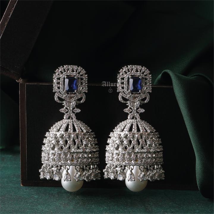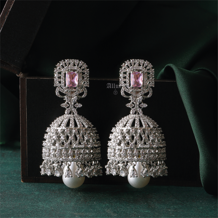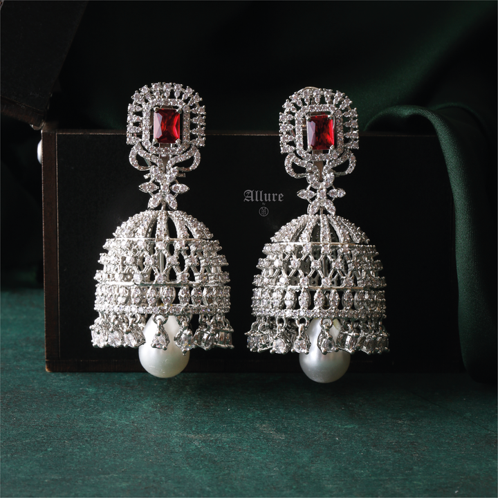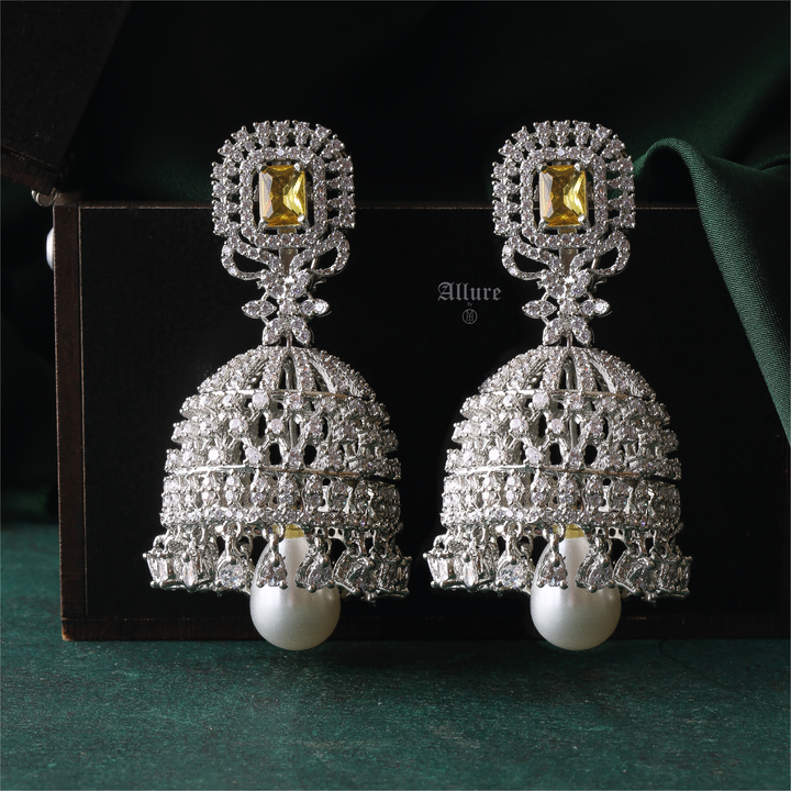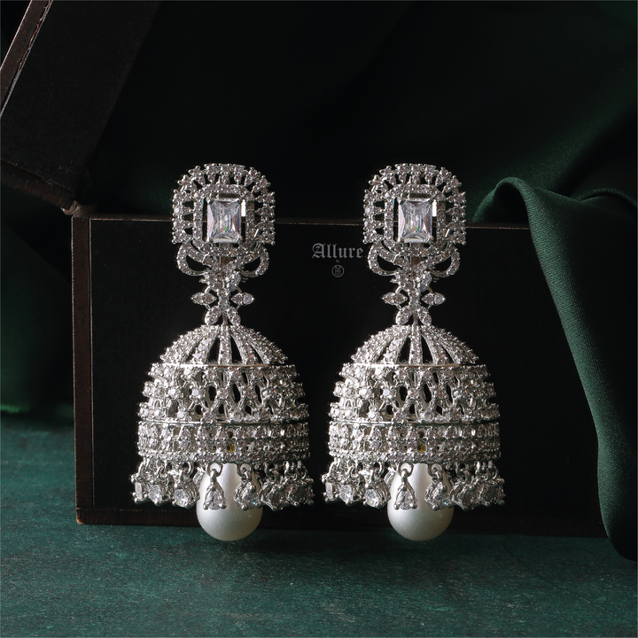 Venusian, an exquisite piece from our celestial-themed earring collection, where traditional design meets cosmic inspiration. Each earring is beautifully crafted with 100% rhodium plating, ensuring a brilliant, tarnish-resistant finish. The design features a classic jhumki silhouette, intricately set with sparkling Zirconia and precise baguettes, creating a stunning play of light. At the heart of the jhumki, a lustrous pearl dangles gracefully, adding a touch of elegance and movement. The top is adorned with a captivating array of Zircons and colored jades, enhancing the overall allure. Venusian earrings are a perfect fusion of heritage and heavenly charm, ideal for adding sophistication to any outfit.   1. Due to the delicate nature of our jewelry, we regretfully cannot accept returns or exchanges. 2. Meticulously crafted using high-quality alloy, adorned with radiant gold/rhodium plating. 3. To maintain its allure, kindly refrain from contact with perfume or water. 4. Handle with care to keep your jewelry looking flawless over time. 5. Crafted to replicate the charm of fine jewelry without the high cost. 6. Created to be gentle on sensitive skin, offering both style and comfort. 7. Store in provided pouch or box to prevent damage and tangling. 8. Store in an airtight container to protect against tarnishing. |