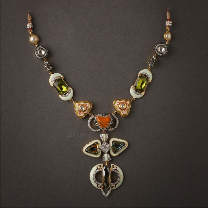 Vixen is a gorgeous, the vibrant necklace features regal swarovskis, enamel work, polki and luxe craftmanship that makes a statement.