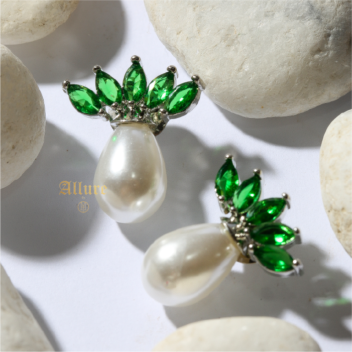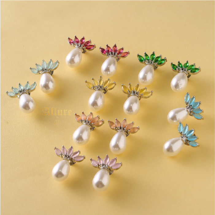 A regal pair of earrings inspired by the elegance of a crown. Featuring colored jades and sparkling Zirconia, these earrings are beautifully finished with a delicate teardrop pearl.