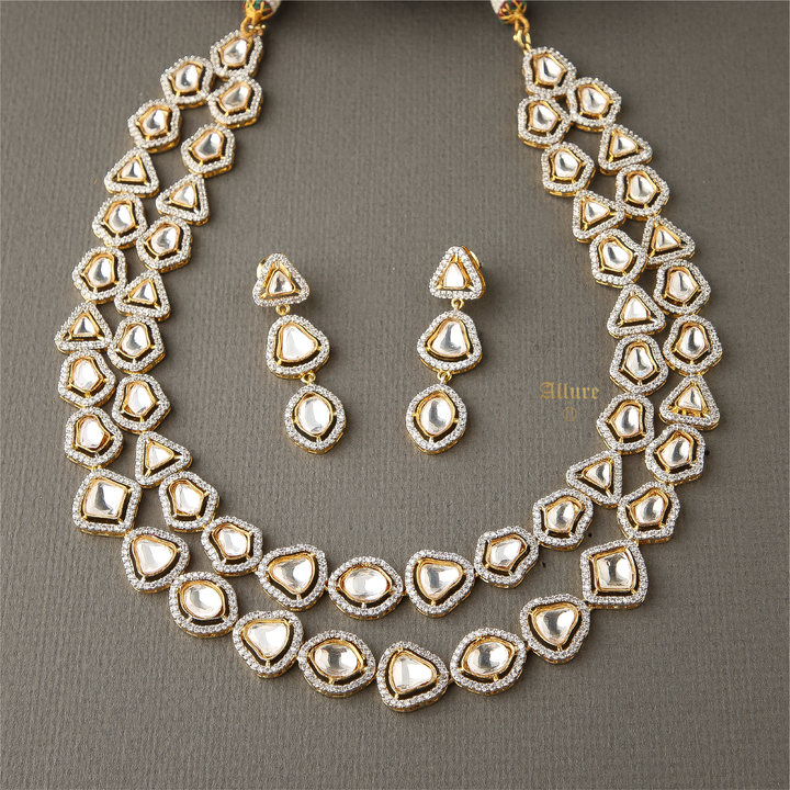 A polki two tiered necklace enhanced with Zirconia nand finished with matching earrings to complete the look.
